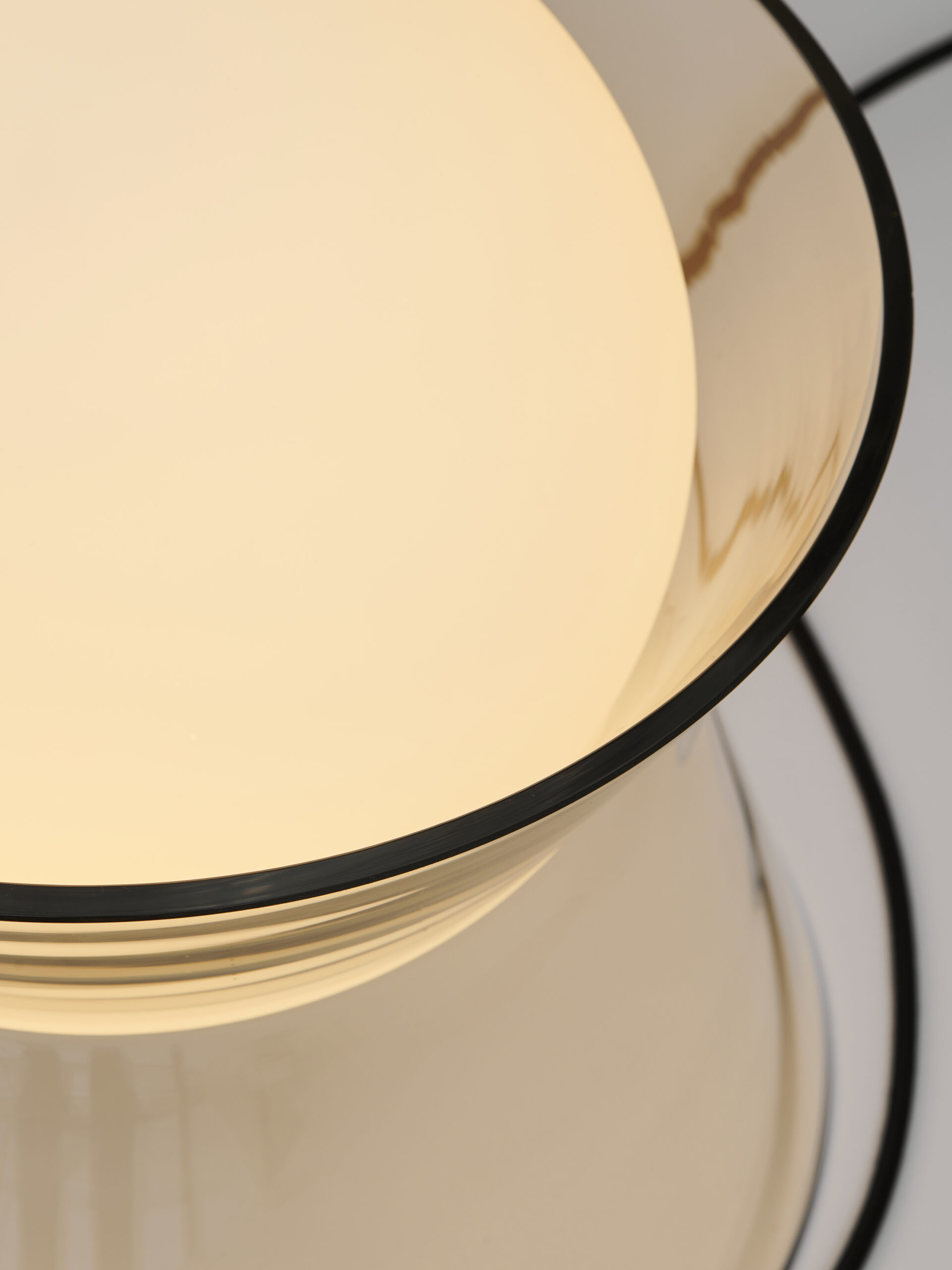 Das satinierte Opalglas erzeugt dank seiner feinen Diffusionseigenschaften ein weiches, gleichmäßiges und warmes Licht, das den Raum ruhig und atmosphärisch prägt, ohne sich in den Vordergrund zu drängen.