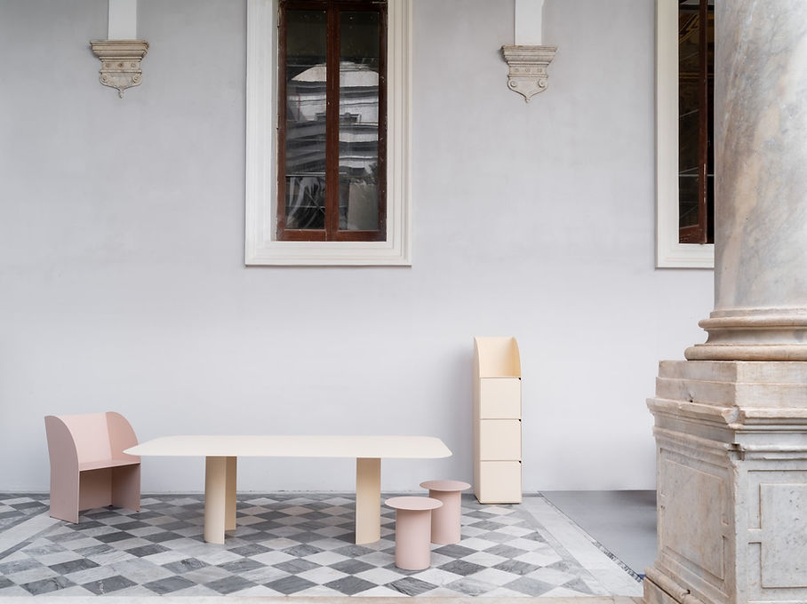 Inspiriert von den Reiseerfahrungen von Emanuele Ferraro in Asien interpretiert INDIA das gemeinsame Essen als zeitgemäßen, sozialen Moment. Der Tisch versteht sich nicht als Objekt mit symbolischer Geste, sondern als ruhiger Begleiter des Alltags – geprägt von Schlichtheit, Leichtigkeit und einem respektvollen Verhältnis zu Material, Funktion und Umwelt.