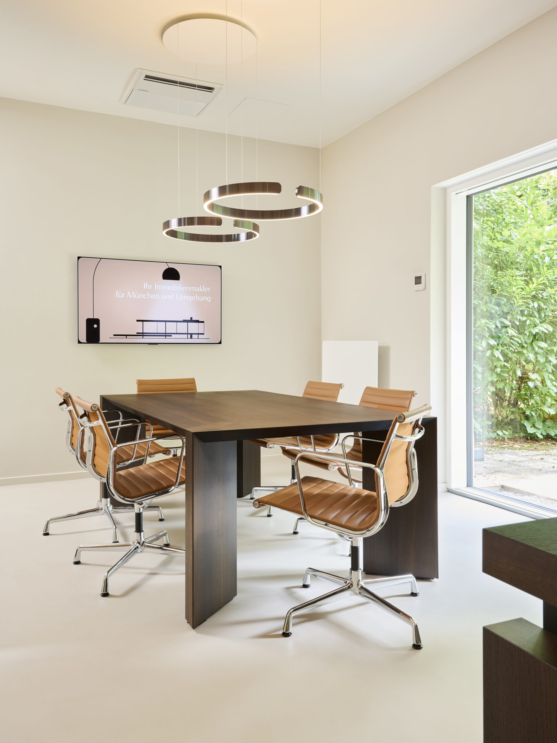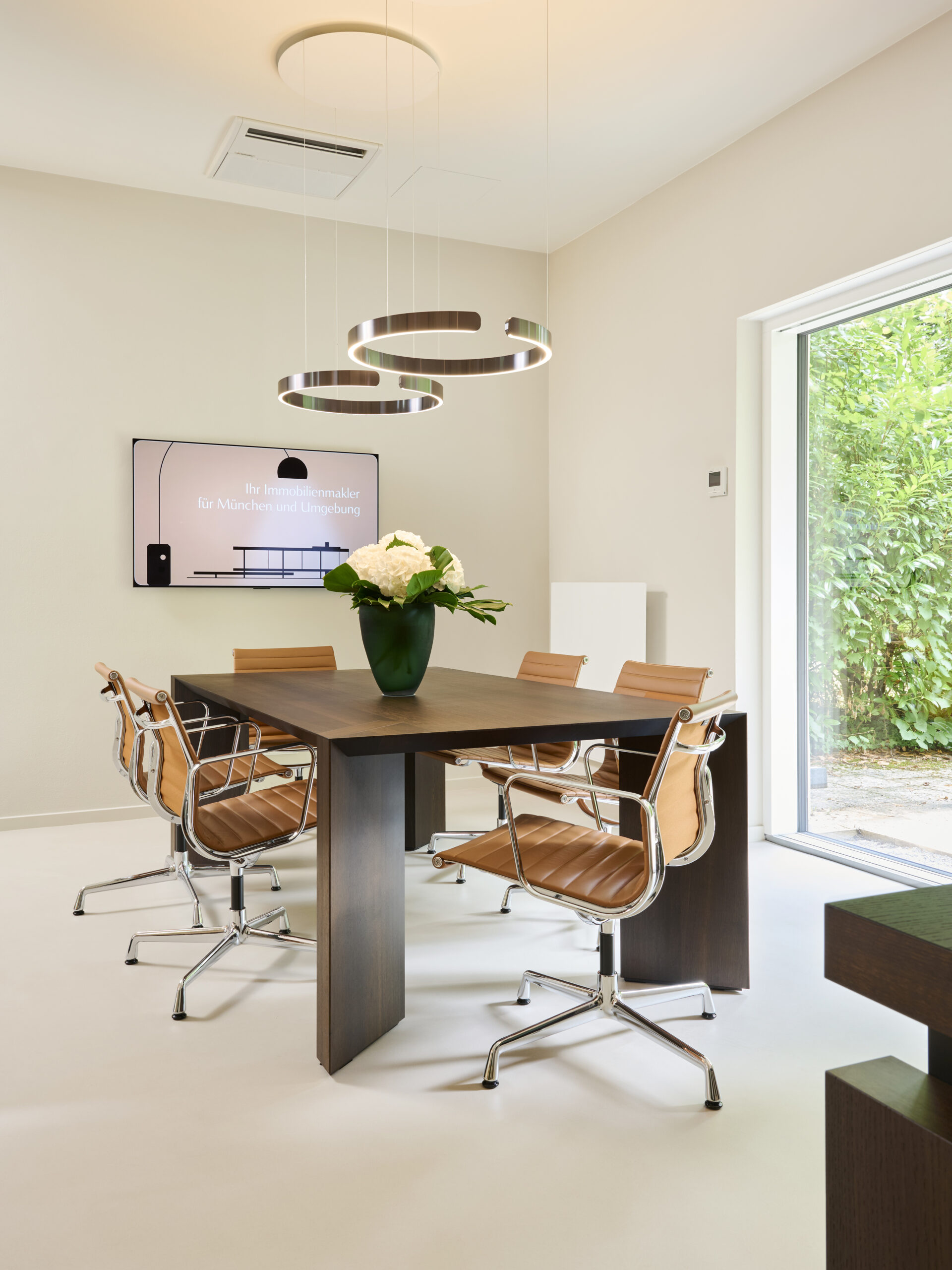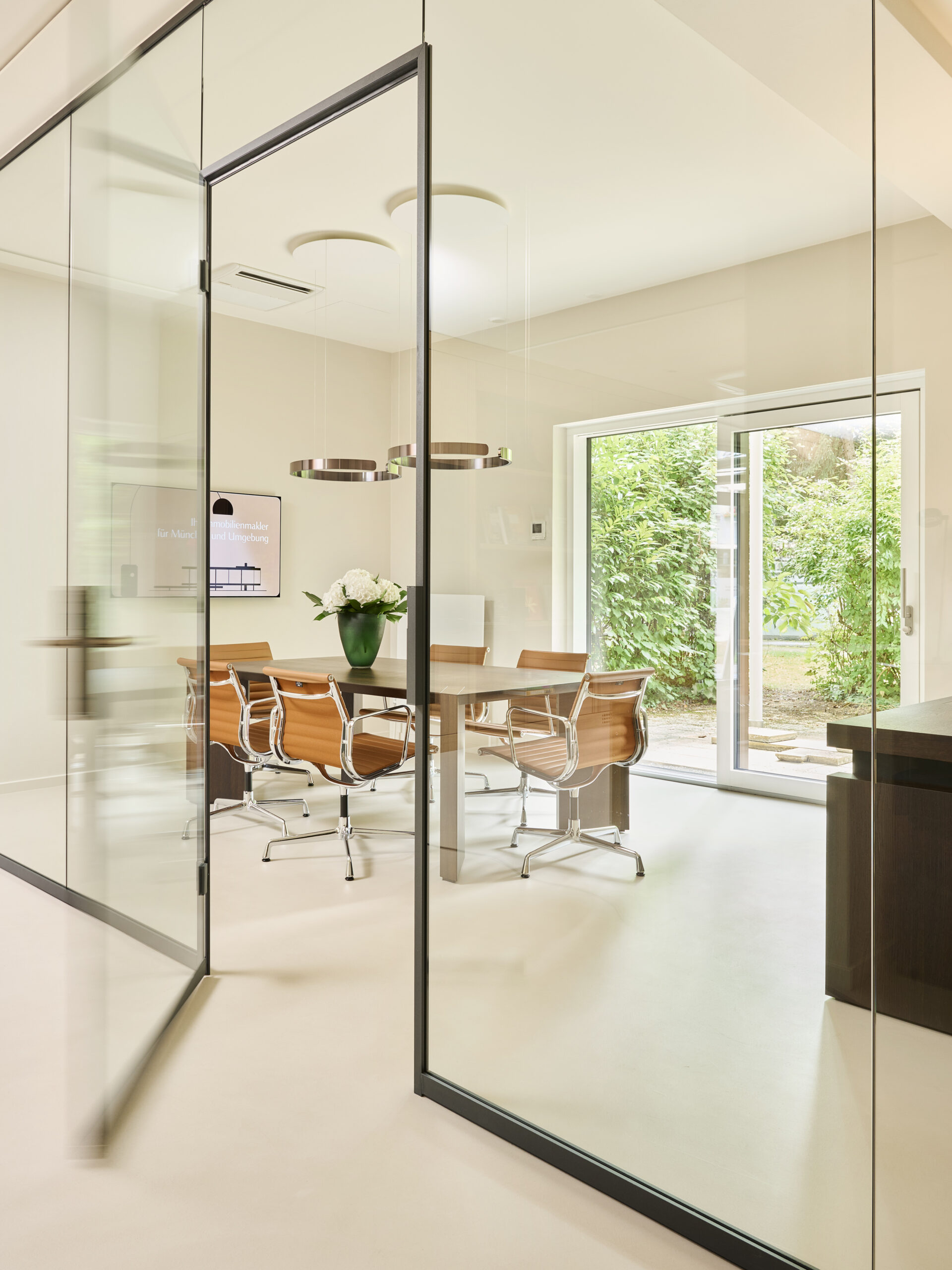 Das Projekt entstand aus dem Auftrag, einen eleganten und funktionalen Arbeitsraum für ein im Premiumsegment tätiges Immobilienunternehmen mit Sitz in München zu gestalten.